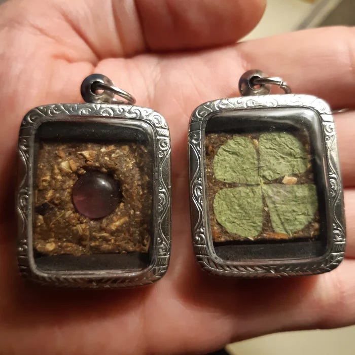 A great sense of FOMO can often be found when considering which amulets or talismans to wear at once. Often it’s tempting to add another and another, wishing for them to stack neatly and orderly into a coherent functioning mechanism. Usually this does not play out as hoped and currents can become too muddled, cancel out the effects of other amulets, or even create pressure headaches. It is totally possible to wear and stack the effects of multiple amulets at once, but it takes a lot of consideration and attention to detail. It is, in my experience, a misnomer that wearing a single amulet is somehow less effective than wearing many. A single item has no potential conflicts in flow, enabling the one chosen to beam more brightly and fill the whole aura of the wearer. This has the added benefit, for the purposes of this post, in enabling a more accurate relational understanding to develop. Taking an item for a few solo spins around the block eliminates any confusion regarding whether it was one item or another that caused a specific outcome or change in thinking and can often bring some surprises that weren’t mentioned by the maker. That intimacy, once established, can then hold coherence when stacked with other items far more easily and coherently within our own minds, especially if we’re taking all the data from the mediation sessions into account and stacking with care and consideration to these factors.